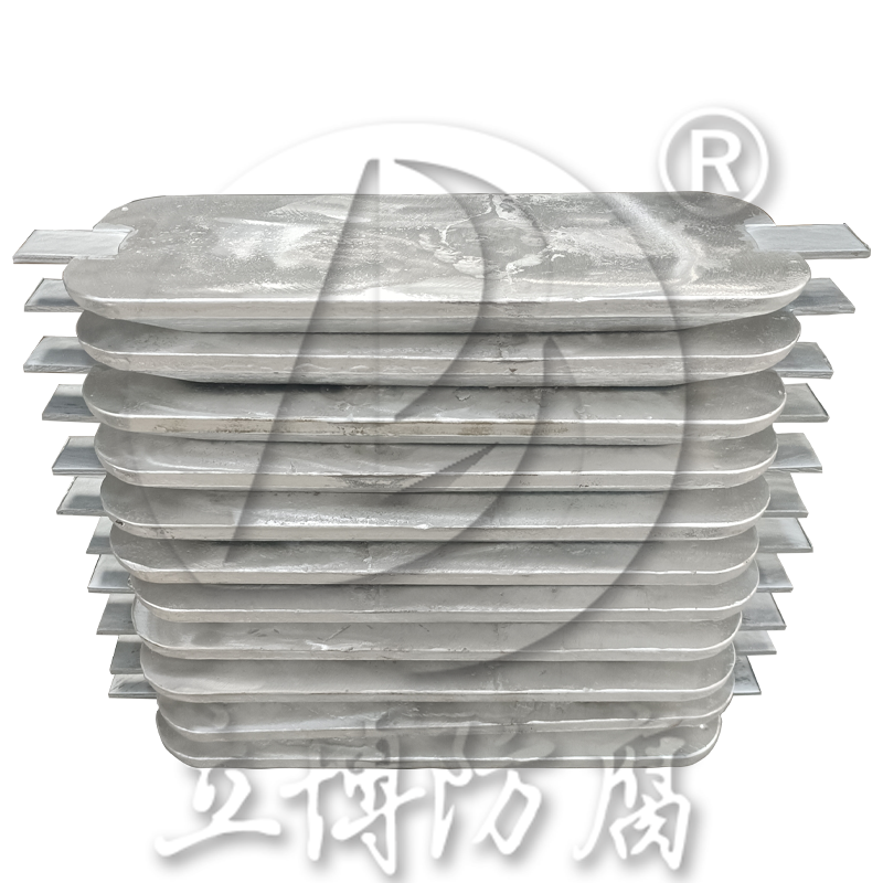 近海用陽極形狀與儲(chǔ)罐用陽極相似,但是,近海用陽極大得多,重約0.5t,以鋁合金制成。根據(jù)它們的強(qiáng)度,大多數(shù)陽極澆鑄在管子或異型鐵件的支撐件上,再把橫向突出的鉤環(huán)焊接上。橫截面通常是不規(guī)則四邊形。
