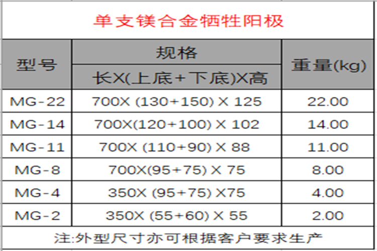 產(chǎn)品類(lèi)型:鎂合金犧牲陽(yáng)極系列