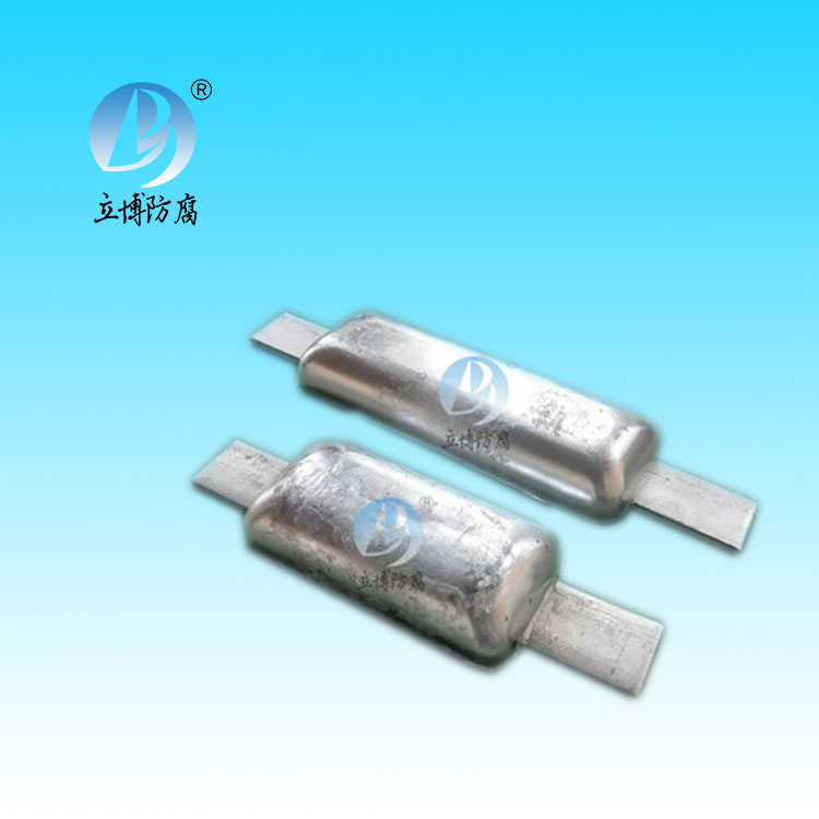 鋅陽極適用于海水、淡海水介質(zhì)中的船舶、壓載水艙、機(jī)械設(shè)備、海洋工程和海港設(shè)施、鉆井平臺(tái)、港口碼頭、海水介質(zhì)的冷凝器、水泵以及低電阻率土壤中的管道、電纜等設(shè)施金屬防腐蝕的陰極保護(hù)。
