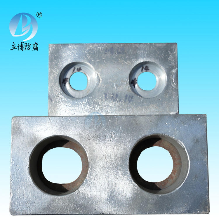 鋅合金陽極適用于海水、淡海水介質(zhì)中的船舶、壓載水艙、機(jī)械設(shè)備、海洋工程和海港設(shè)施、鉆井平臺(tái)、港口碼頭、海水介質(zhì)的冷凝器、水泵以及低電阻率土壤中的管道、電纜等設(shè)施金屬防腐蝕的陰極保護(hù)。